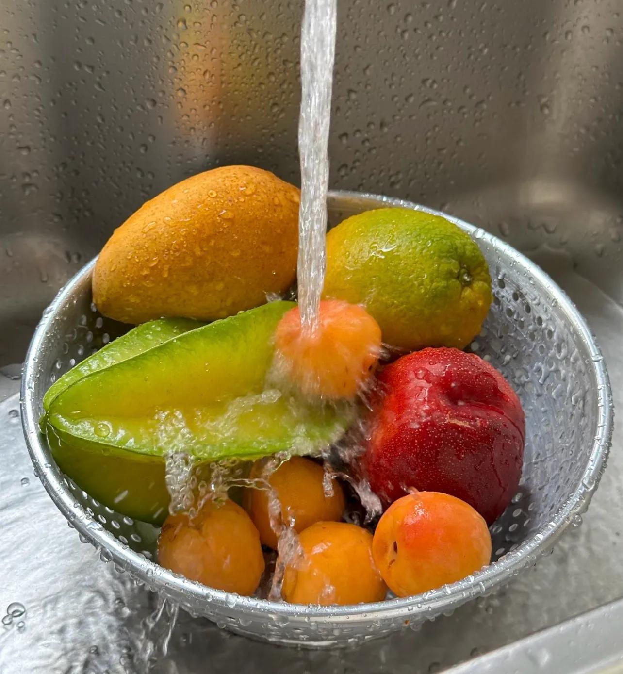 此外,搓洗也不推薦,因爲有可能會把細菌揉進果皮中。