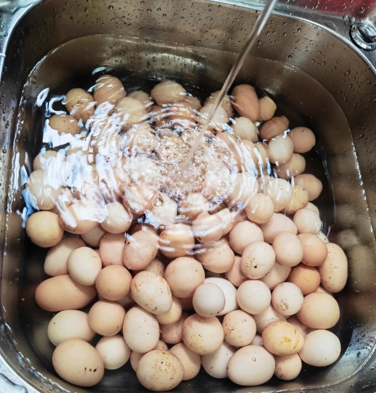 3、雞蛋:「沖洗、擦洗」不如「不洗」