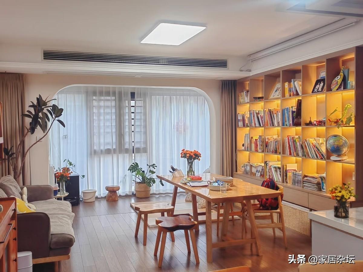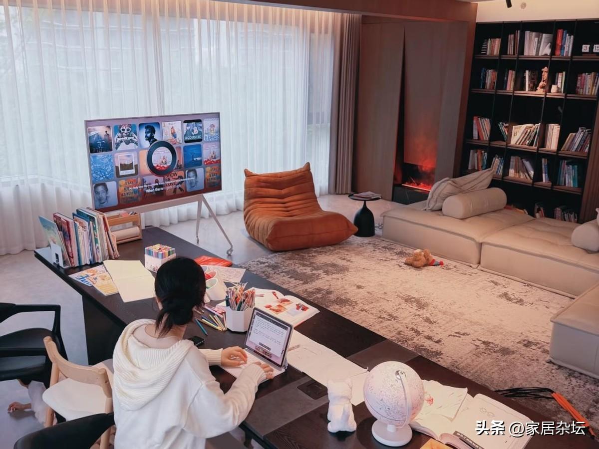 裝修好你就會發現,這個客廳功能多樣。孩子做作業,父母工作,還能一起做手工,讓客廳變成了自然共處的空間。