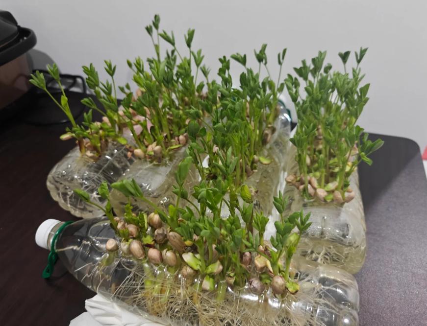 網友@困困的安師傅更是絕了,找了幾個1.5L的礦泉水桶,打了孔之後,把花生塞進去,妥妥的成了水培神器!