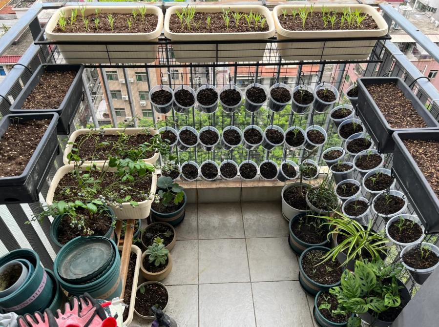 該說不說,還是南方這種“開放式陽臺”好啊~盆栽蔬菜太適合了。