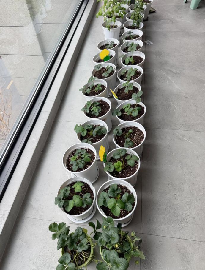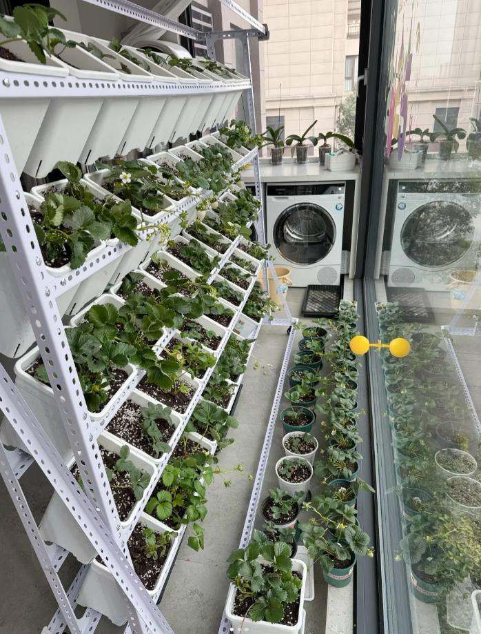還有下面這位,居然在陽臺種了90多盆草莓!