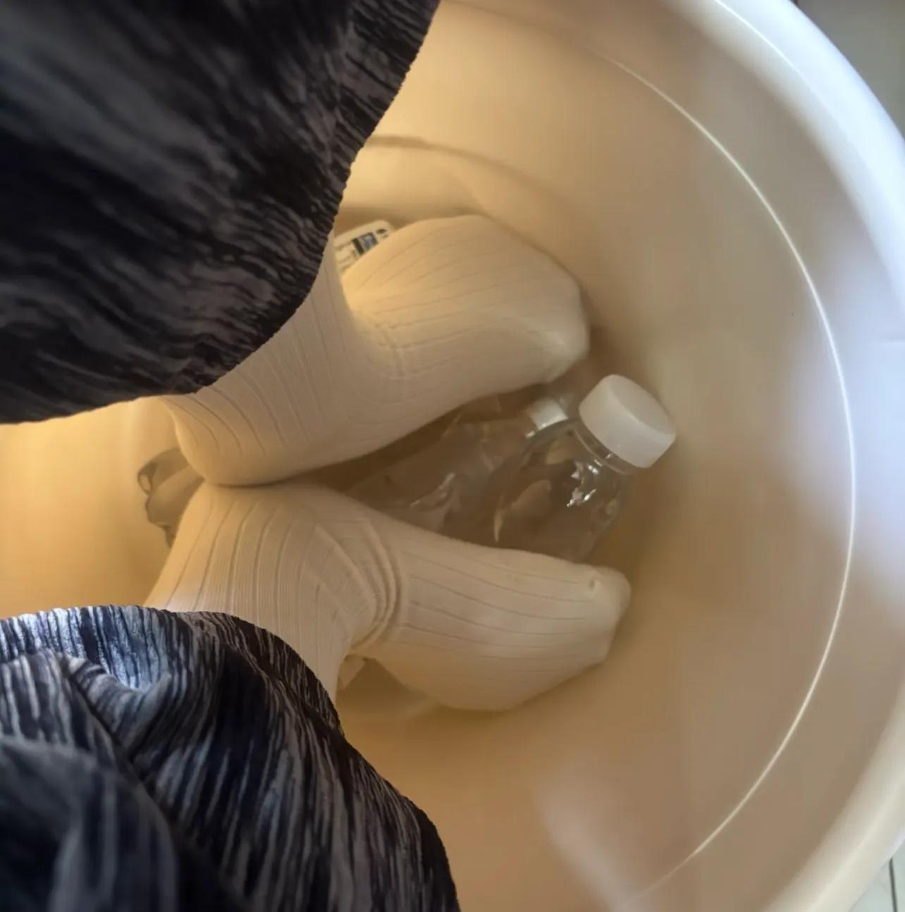 她便想出了水桶+熱水塑料瓶的取暖辦法,並且準備之後專門買個小毯子塞桶裏,以延長保溫時長和舒適度。