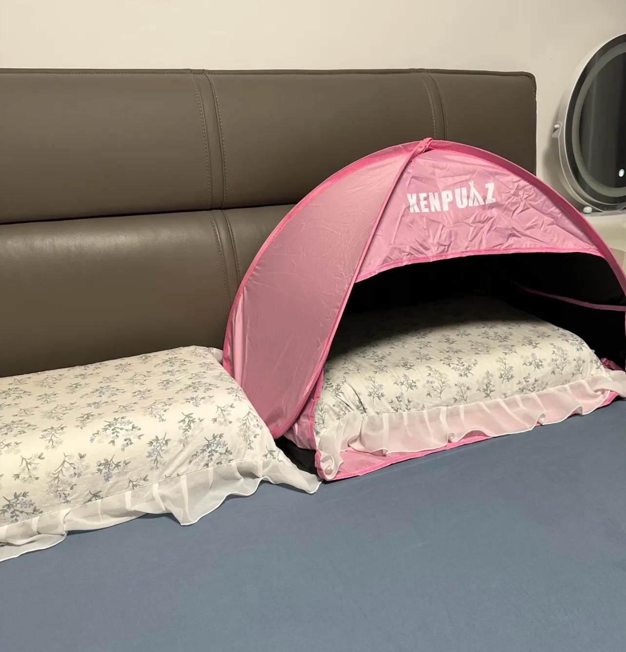 住友@彤媽 則直接買了一個睡眠帳篷回來,商家的詳情頁寫的是:冬天防頭冷、夏天防空調直吹,還是遮光神器,讓你擁有完美睡眠!