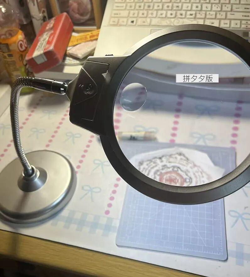 它一改傳統放大鏡手握式的設計,而是做了“底座”和“多角度調節”功能,讓其可以立在桌子上,從而能解放雙手,特別適合做手工。