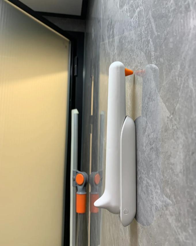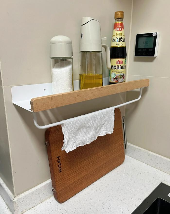 這玩意是免釘膠的,直接粘貼在廚房的牆磚上就行,承重力很強。