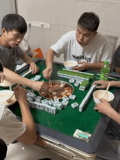 住友@天外飛仙展示了什麼叫麻將桌上的“喫喝玩樂一體化”。
