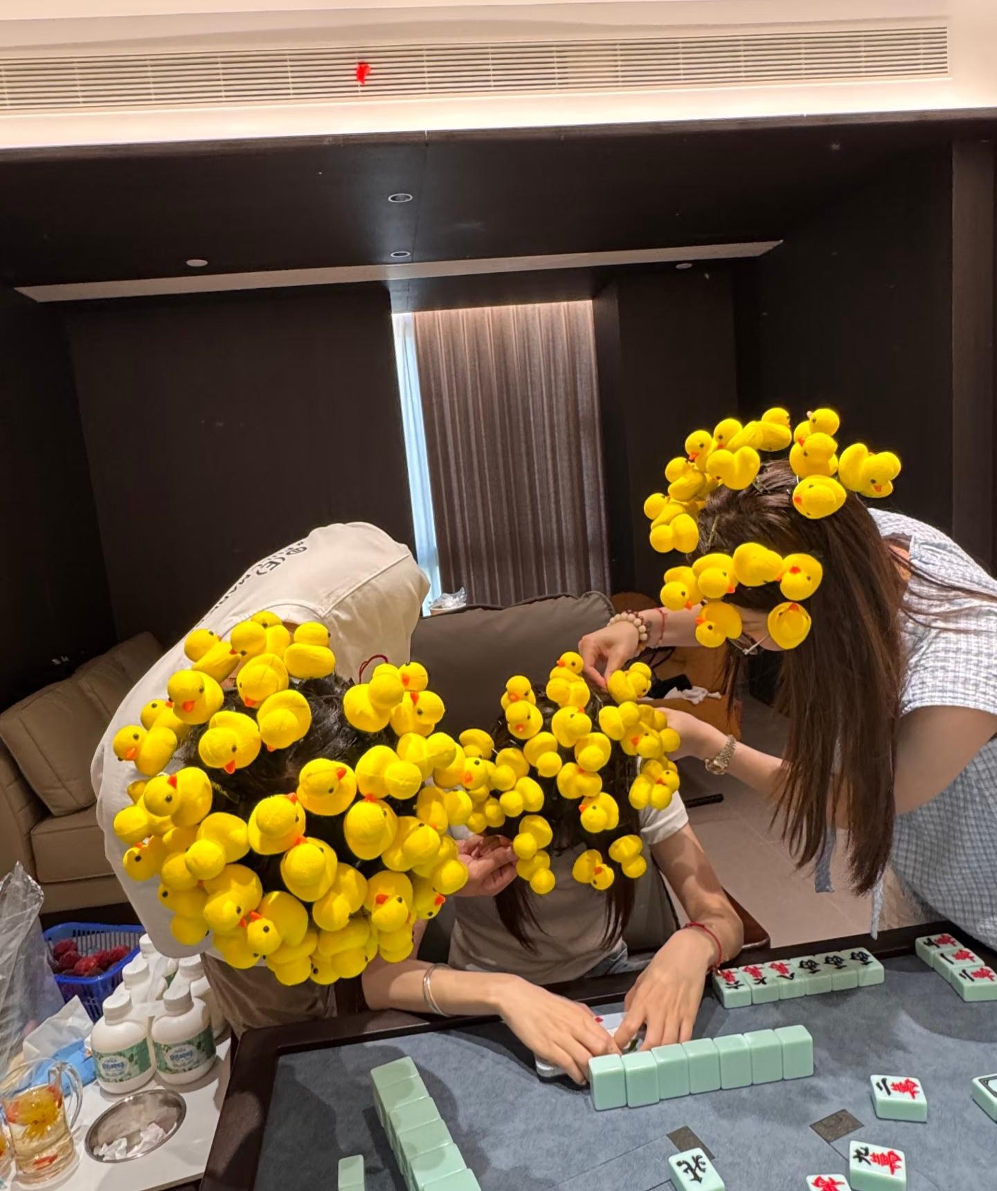 打麻將,總得有點賭注才刺激,不過咱們已經說了小賭怡情,鈔票就不參與討論了,住友@張囡囡貢獻了一個籌碼——輸的人夾小鴨。