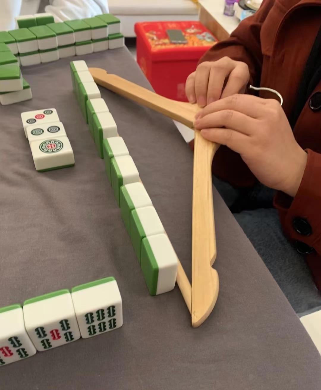 我也沒見過,大部分應該都是徒手碼齊吧,據眼尖的網友猜測,這是溫州麻將,可能有這個習慣。