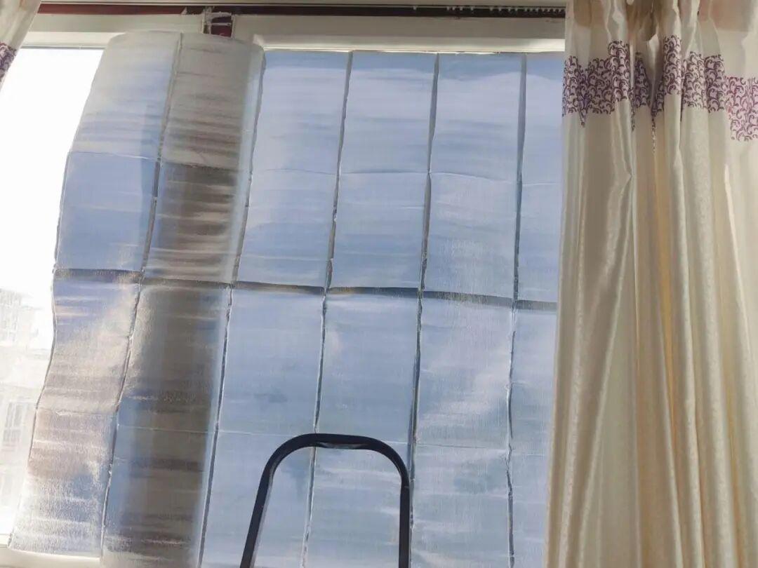 我們只需要將外賣保溫袋裁剪成相應的尺寸,粘貼在玻璃上,或者是貼在窗框的縫隙處。