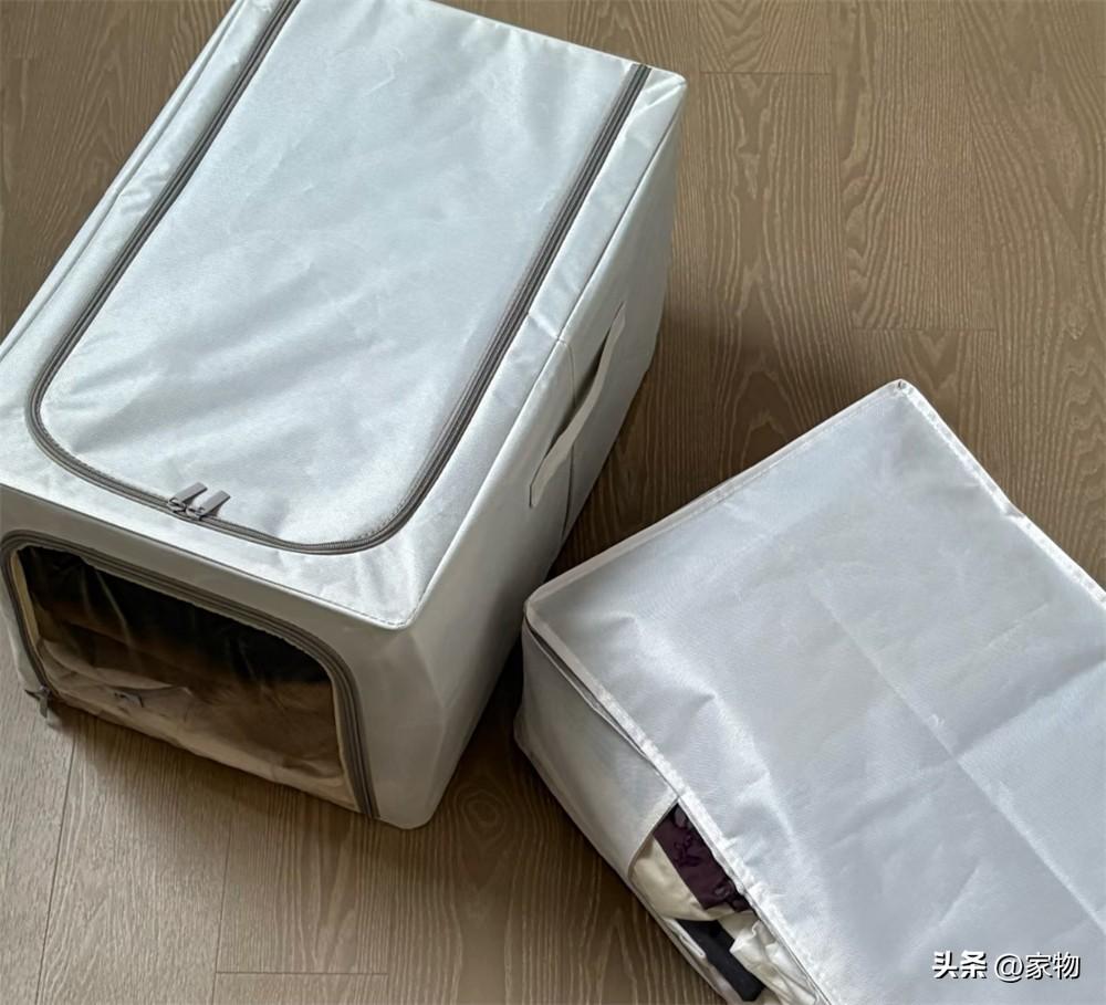 它有上拉鍊和側拉鍊兩道,側邊還是一個透明的“小門”,既方便收納和拿取,放在衣櫃裏又能看到每一個收納箱裏收納了什麼。