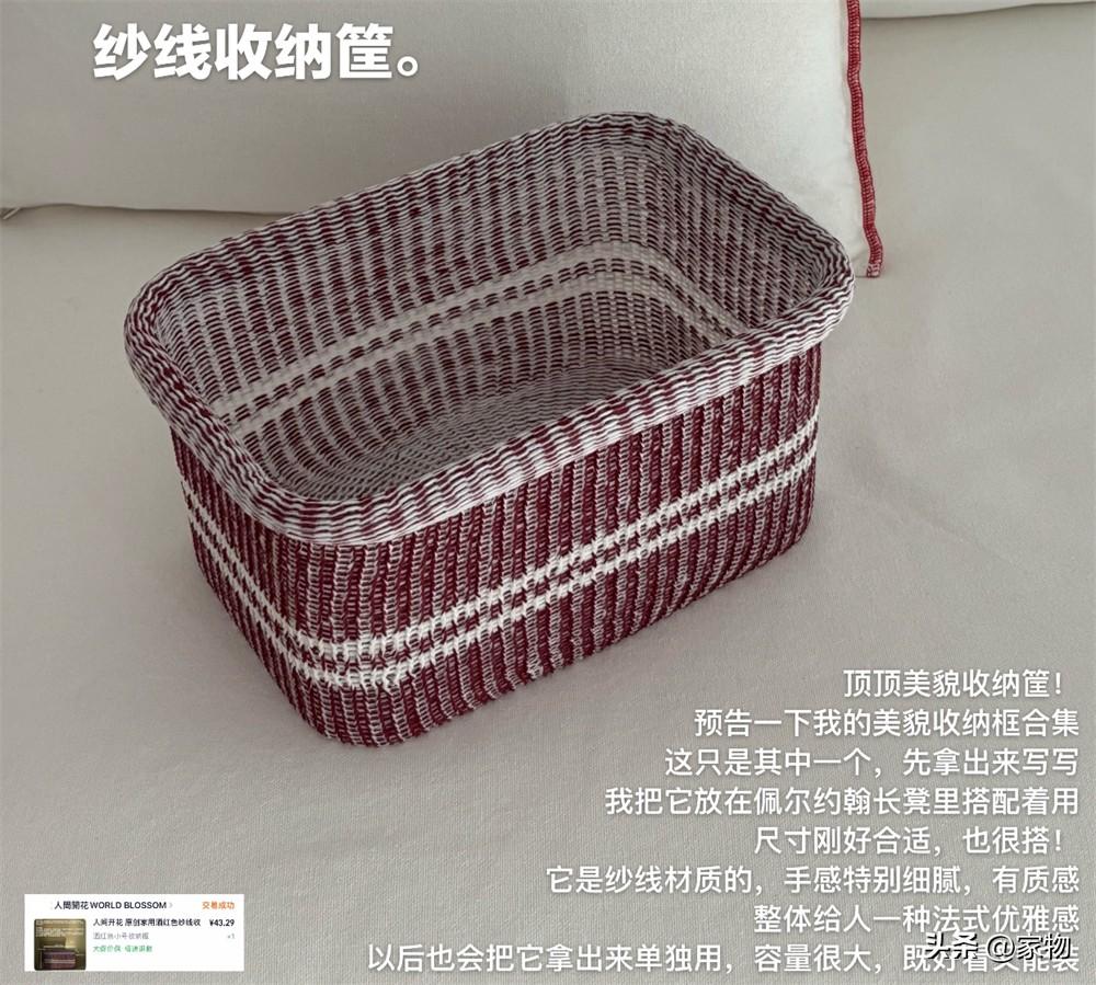 超級漂亮的收納筐!應該是有鋼架支撐,外面是編織細密的紗線,看起來簡單卻很實用,當個髒衣簍、毛絨玩具籃,或着是運動服收納框都不錯,也算是我去年買到過最實用的收納用品之一了。