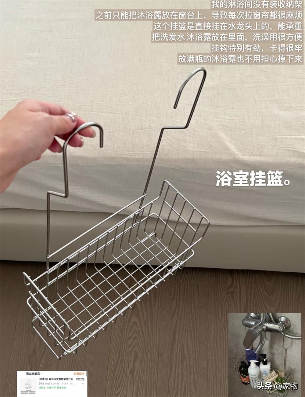 直接掛在浴室冷熱水管上的一個收納籃,大大減輕了浴室的收納負擔,既不用打孔又不用膠粘,掛上去就能直接用。