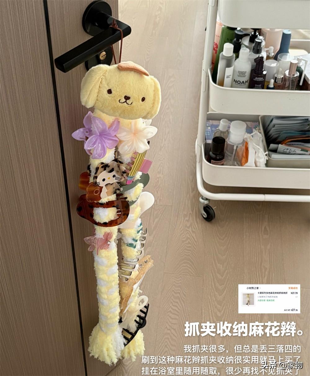 這種情況下,我建議大家和我一樣試試這抓夾收納玩偶,掛在門把手上就行,用過後的髮卡抓夾直接夾上去,又可愛又能妥善收納~