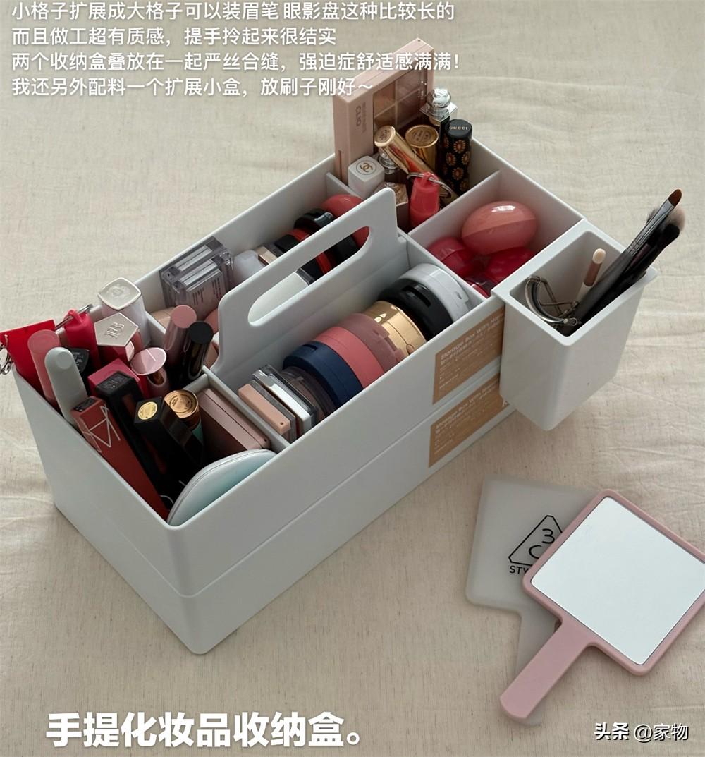 一個超靈活的化妝品收納盒,我梳妝檯上現在其他雜七雜八的收納盒統統扔了,只留下了這麼一個。