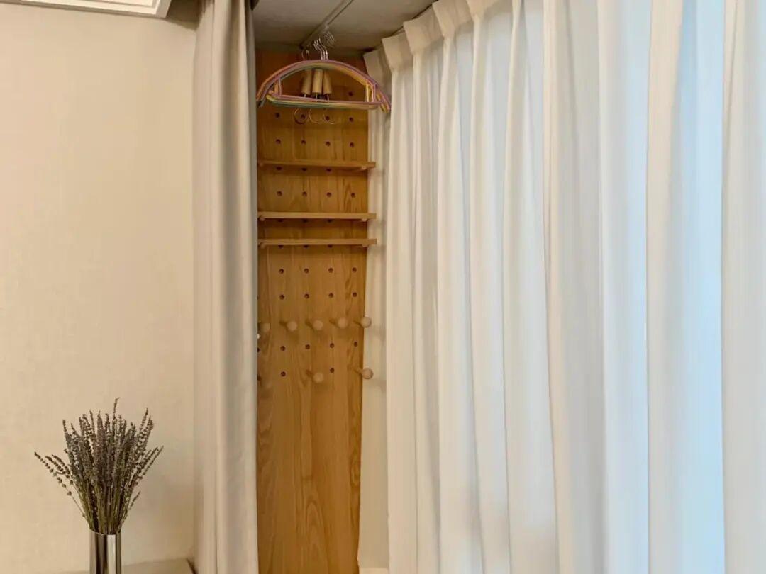 回家以後脫下的衣服沒有地方收納,那麼建議大家來了解第五種收納方式,飄窗改造收納櫃,用來掛衣。
