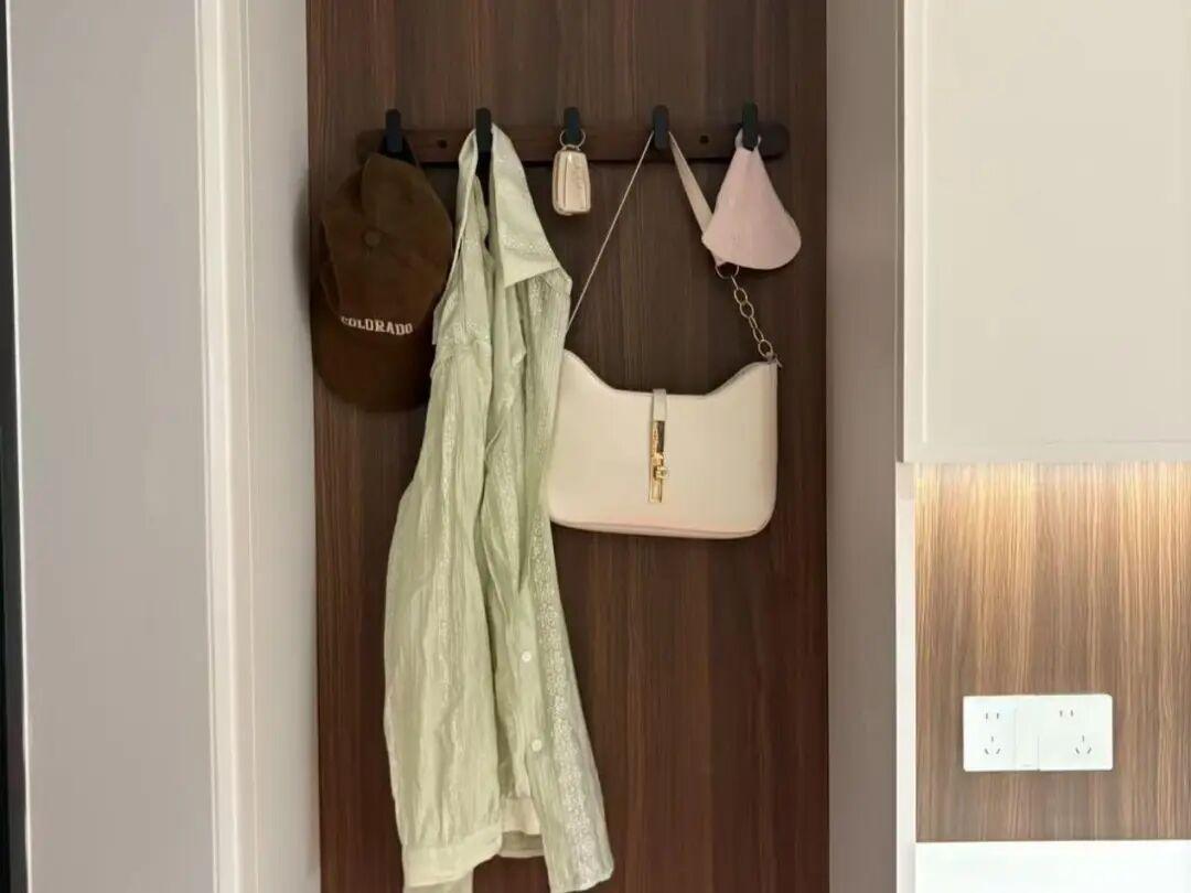 回家脫下的衣服,第一個位置應該考慮玄關,建議大家在玄關設計玄關壁掛式衣帽系統。