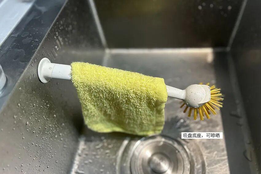 相比較傳統鍋刷,它並沒有什麼高的科技和狠活,只不過就是在底部做了一個吸盤設計,就變的非常好收納。