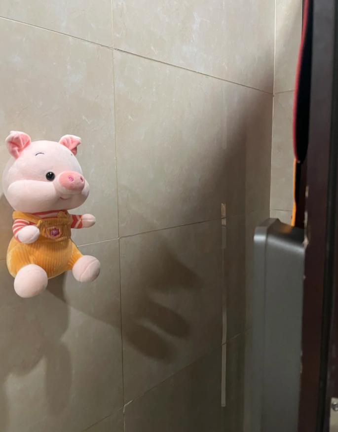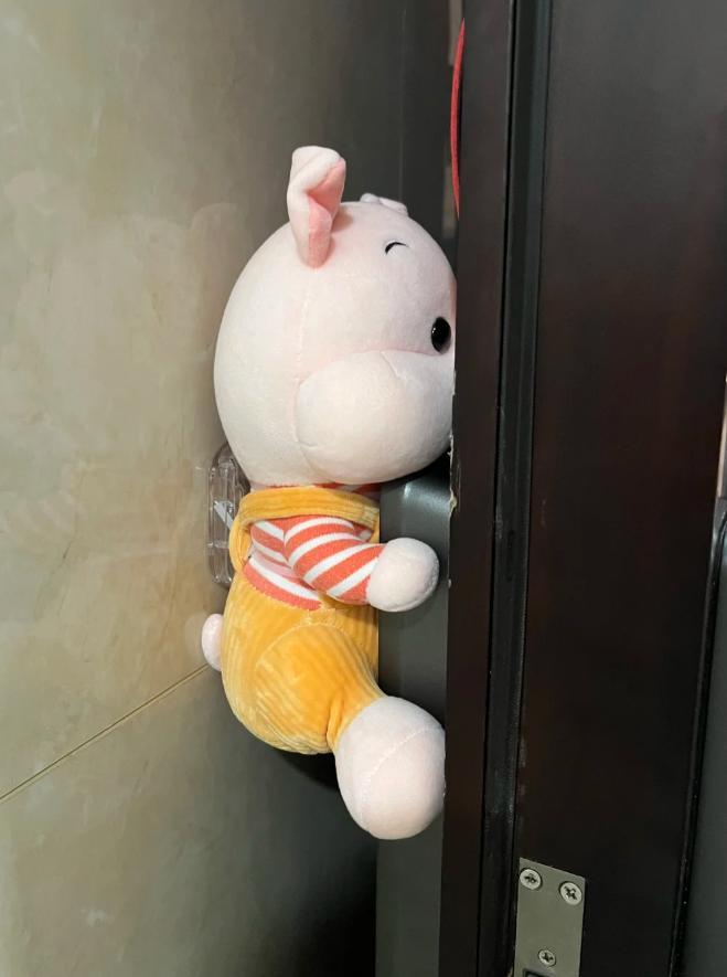 家裏有啥玩偶都可以試試了,直接找個雙面膠粘貼到牆上就行。