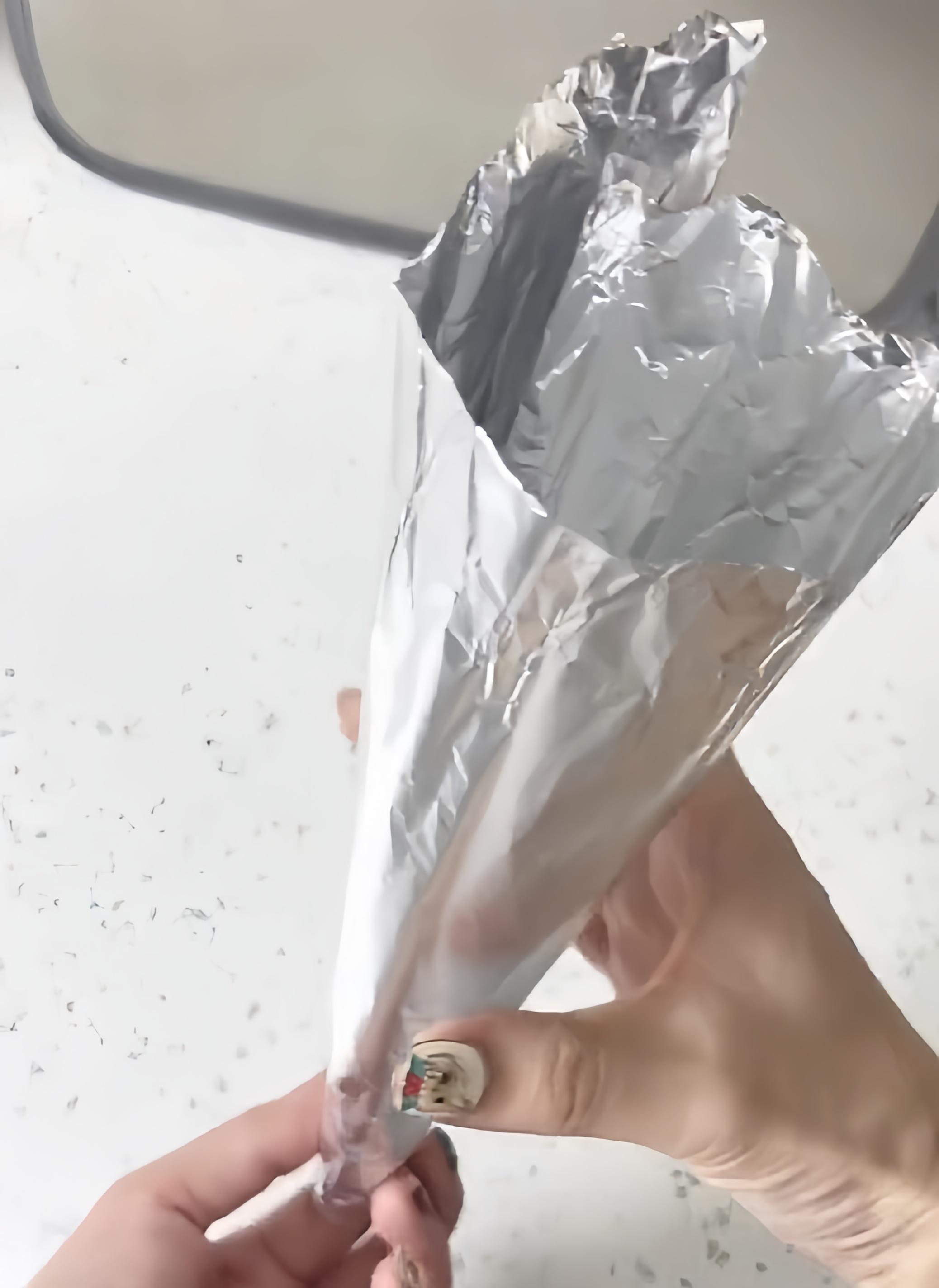 你看,這不就解決問題了!甚至比專門的漏斗還好用。(用完即扔還不心疼~)