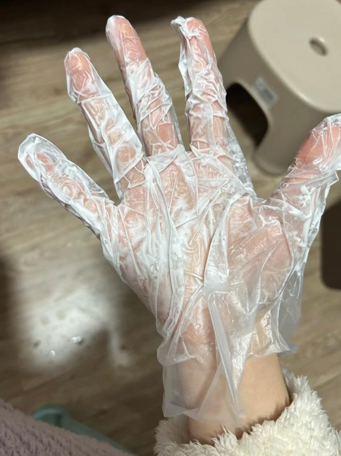 把護手霜塗抹到手上,找兩個“一次性手套”,塗抹按壓均勻,戴上二三十分鐘就可以了。