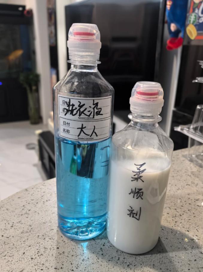袋裝的洗衣液和洗衣粉,倒的時候很容易倒多。建議不要花錢買什麼專用的收納盒了。直接用奶茶杯子就行啊!