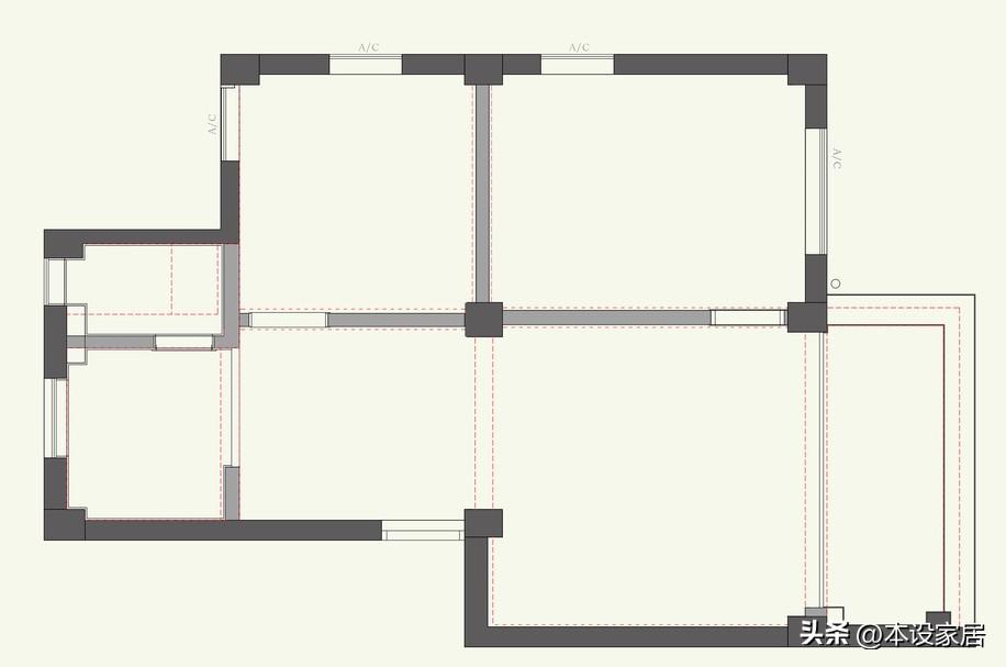 首先就是拆拆拆,拆掉客廳與陽臺、與臥室的非承重隔牆,以及餐廳與次臥的隔牆,並改變原有衛生間的門,讓每個空間的視覺放大,形成一個小而精、小而美、小而實的居住空間。
