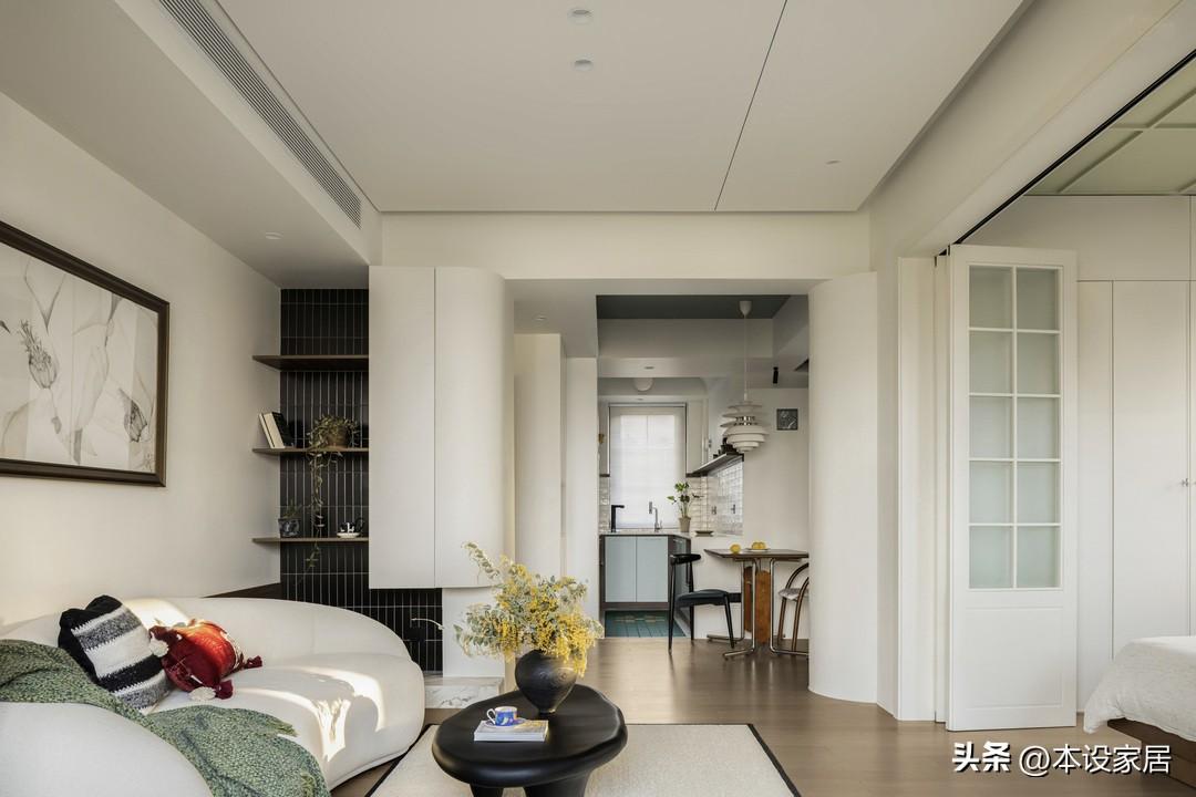 在改造上,通過敞開式的佈局,來弱化空間的侷促感,再加上淺色調氛圍,帶來了更好的居住體驗。