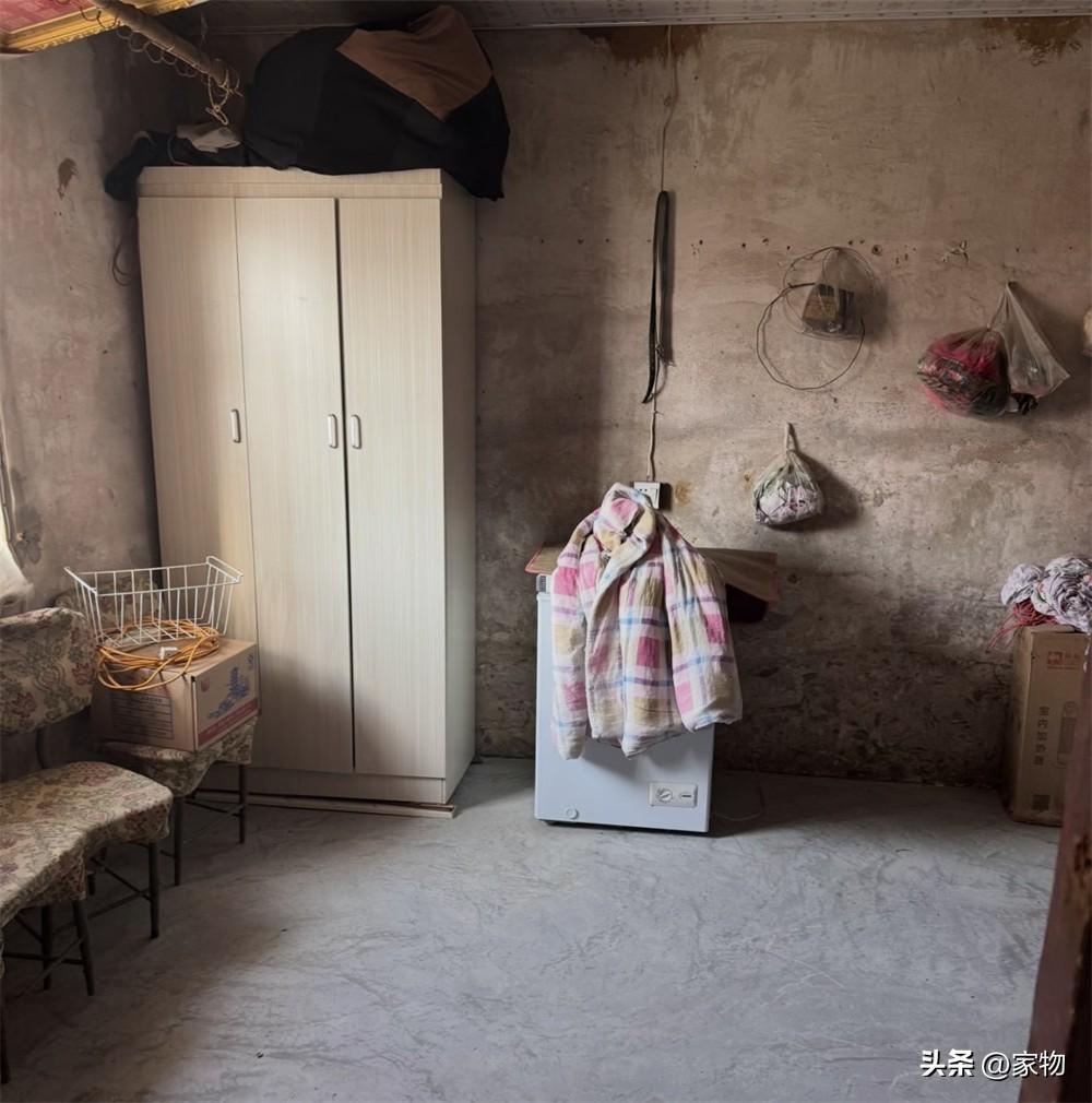 說起來家裏一共有兩間臥室,其中,主臥室的面積很大,也是之前屋主在住的地方,但它卻早已被歲月“摧殘”得不成樣子,不僅沒什麼收納,傢俱也很老舊,就連牀都是墊個磚頭直接用……