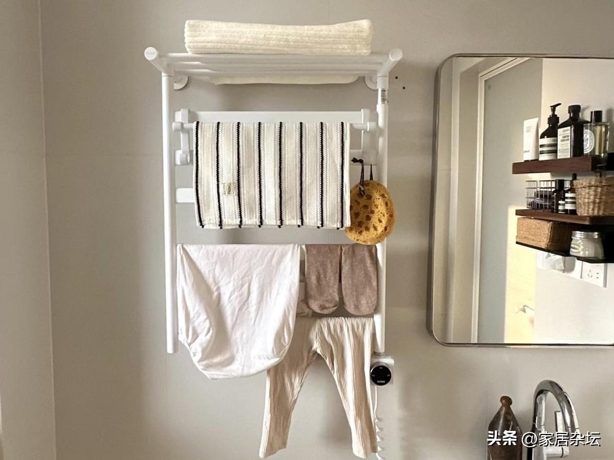 那麼就可以用電熱毛巾架,它不僅是毛巾烘乾架,更是小型浴室空間的加熱源。常見的就是插電式的,當然還有與鍋爐連接的水暖式的。