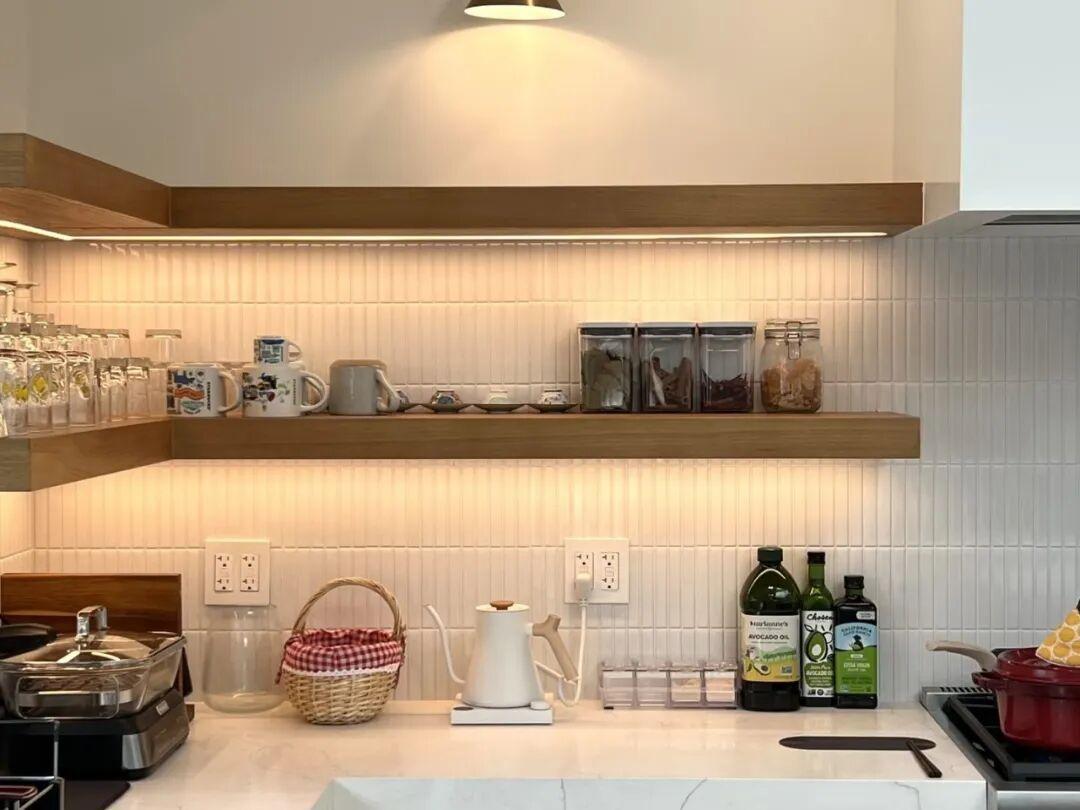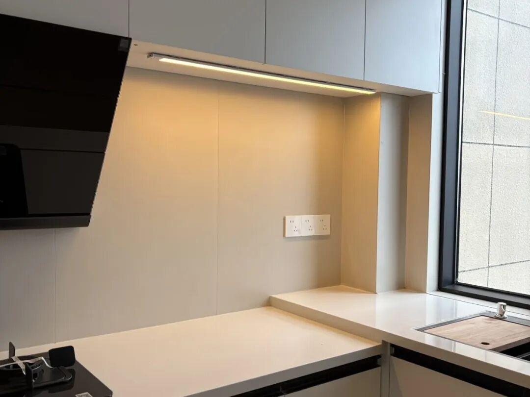 以前晚上做飯,身體總是擋住廚房的頂燈,操作檯上有很多陰影,切菜都看不清。而現在燈帶一開,無論是切菜炒菜,都看得清清楚楚了,安全又方便。