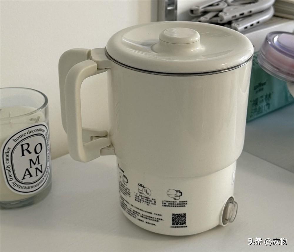 隨手買的一個摺疊燒水壺,也同樣是獨居和租房的實用小電器,手柄分開向下按壓就能摺疊起來,出門的時候可以不用“犯險”用酒店的水壺,燒水效率也高,作爲租房族神器,走的時候也方便帶走。
