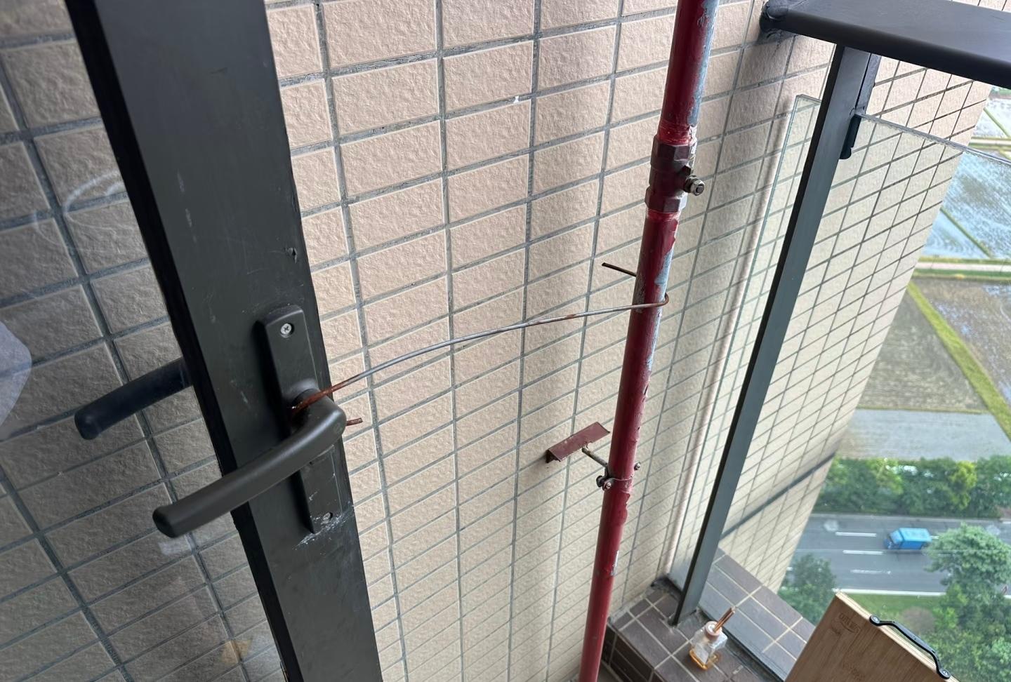 結果低頭一看,陽臺地面有根生鏽的鐵絲,從住進來就不知道它幹嘛用的,但也一直沒扔。