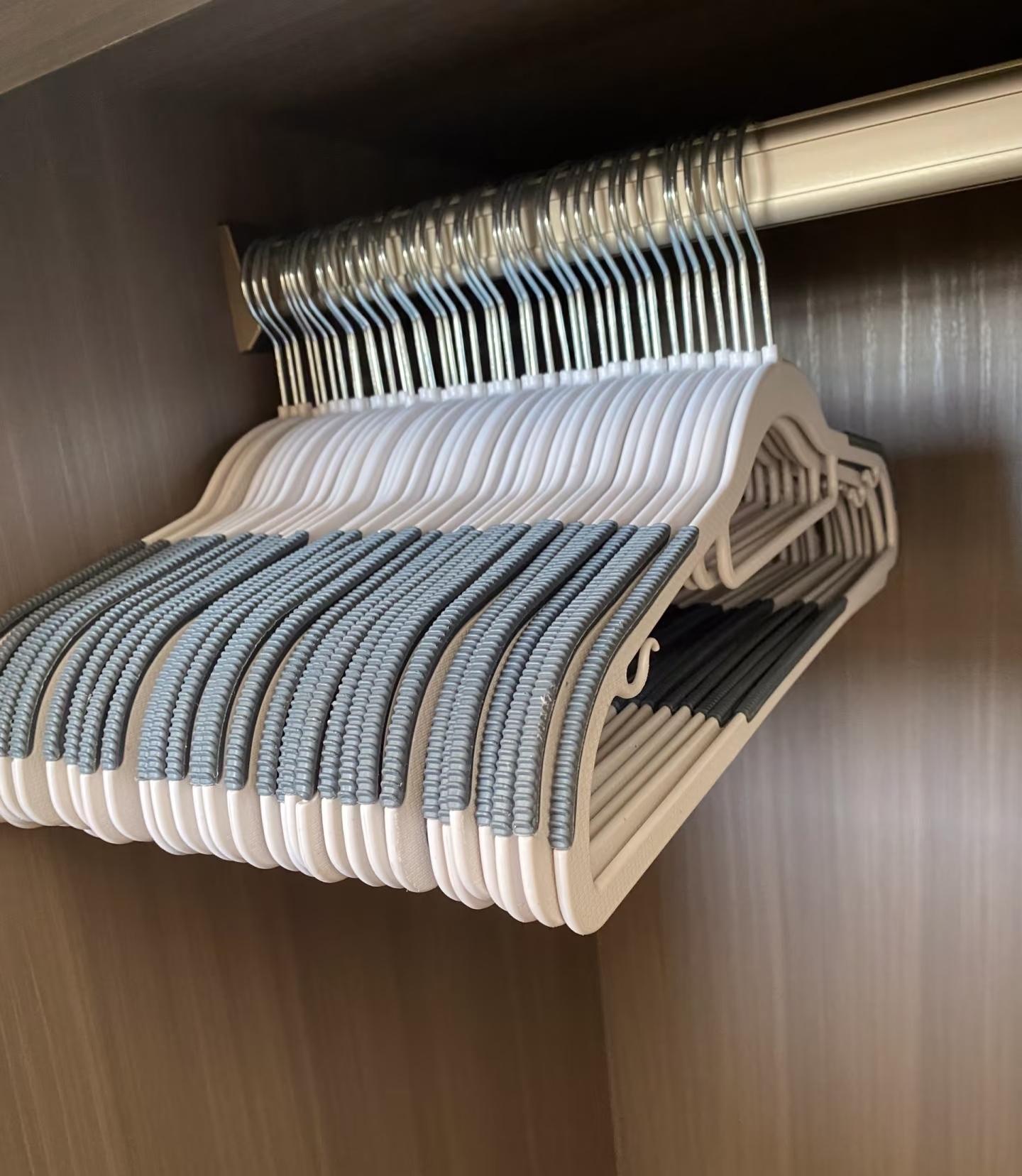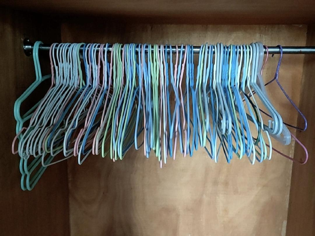 一打開新租房的衣櫃,就看到前任租客留下的一排衣架,雖然顏色花花綠綠不太統一,但數量管夠。