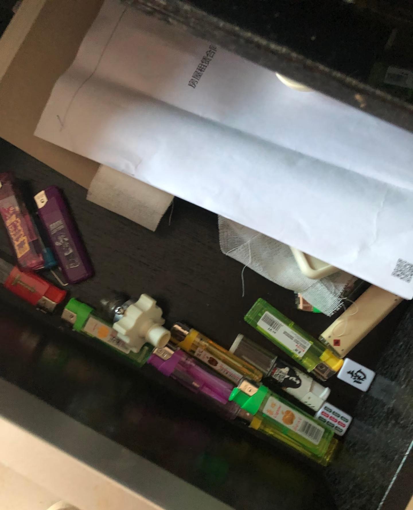 抱着一絲希望拉開每個抽屜,好傢伙,有一個裏面躺着一堆打火機!