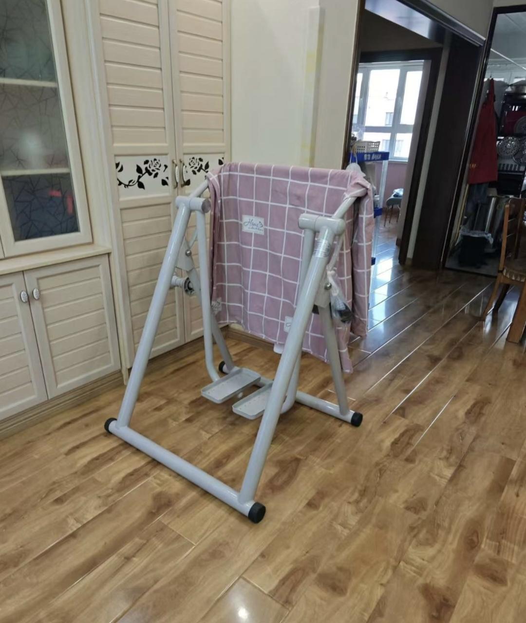 白撿一臺,隨時能鍛鍊,而且還能掛牀單、衣服,很實用,跟跑步機一個效果嘛!