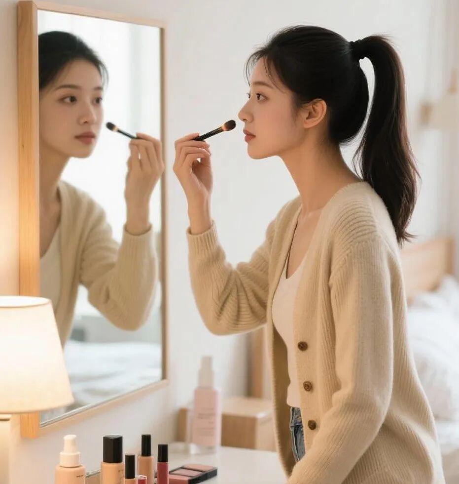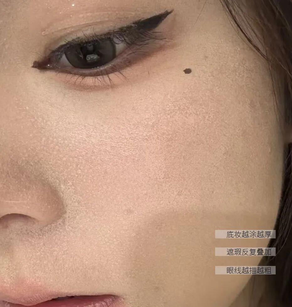 原來,化妝的時候貼的鏡子太近,反而會陷入細節陷阱:過度關注毛孔、細紋、微小瑕疵,反而會導致底妝越塗越厚、遮瑕反覆疊加、眼線越描越粗。