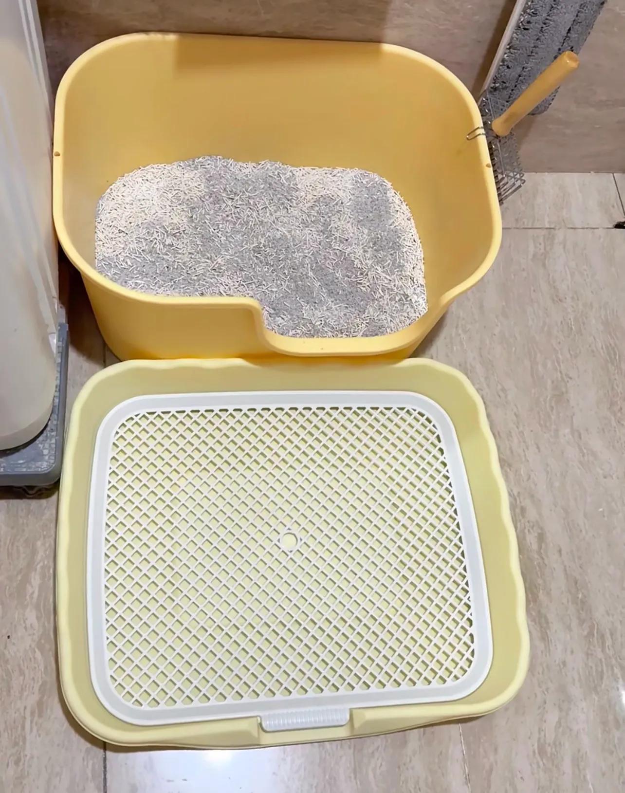 還好,有轉機,貓狗有時雖不對付,但它們的好物卻可以共享,一個被許多貓家長髮掘出的“天才平替”正在流行:用狗廁所來代替控砂墊,完美!