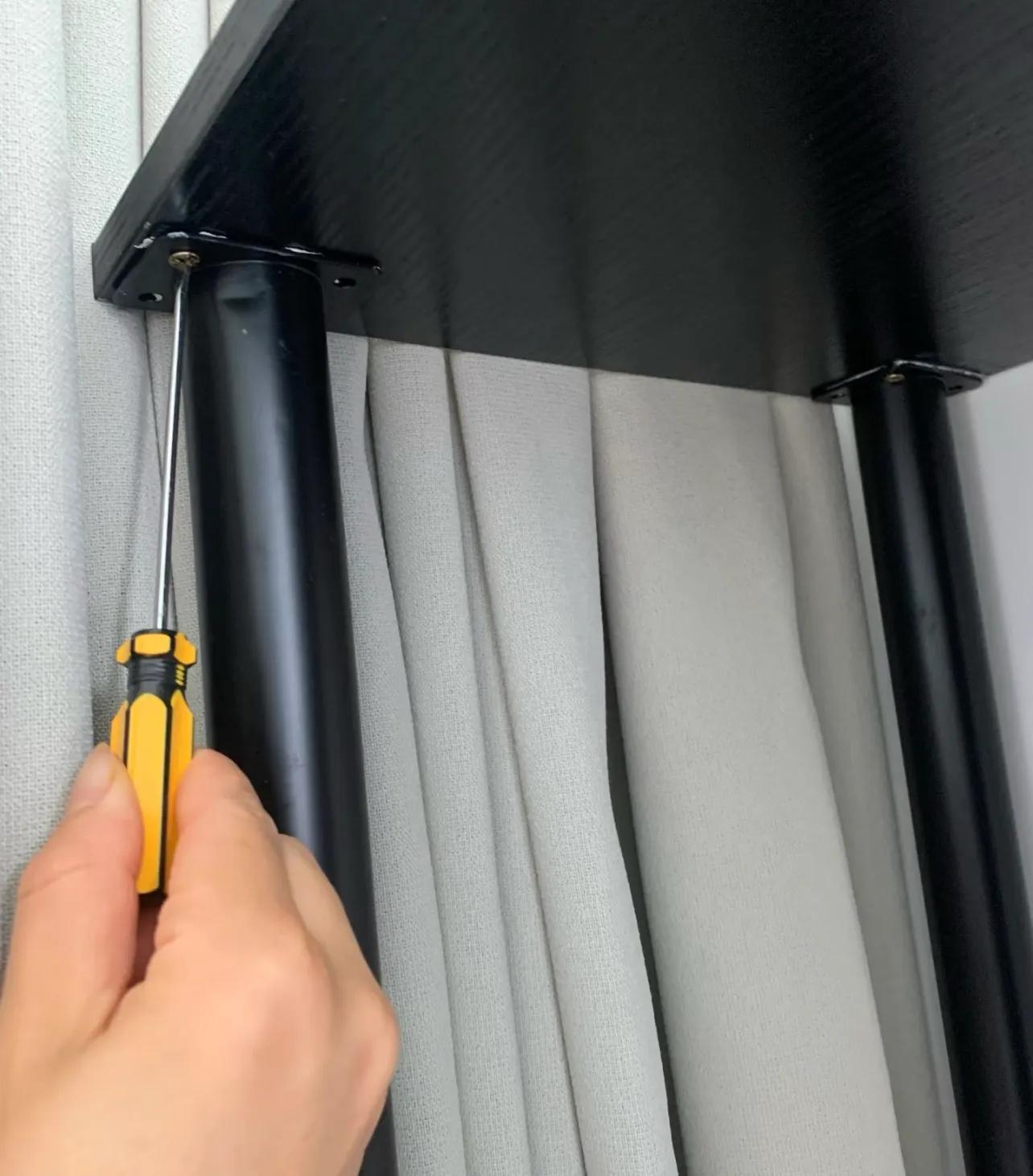 最後,在木板懸空的那一側裝上桌腿,一個穩定的L形桌體就大功告成了。