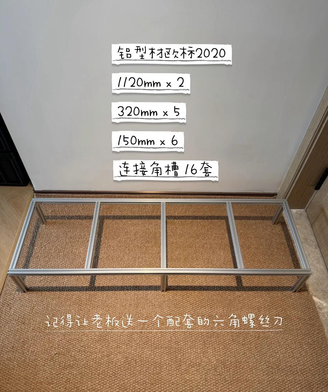 這個組合底部的增高架,是鋁型材,結構很簡單,不太懂的話,咱之前講過的may-CAD軟件,就能生成好型材規格、數量,直接給店家看,配好貨後,按圖組裝就行。