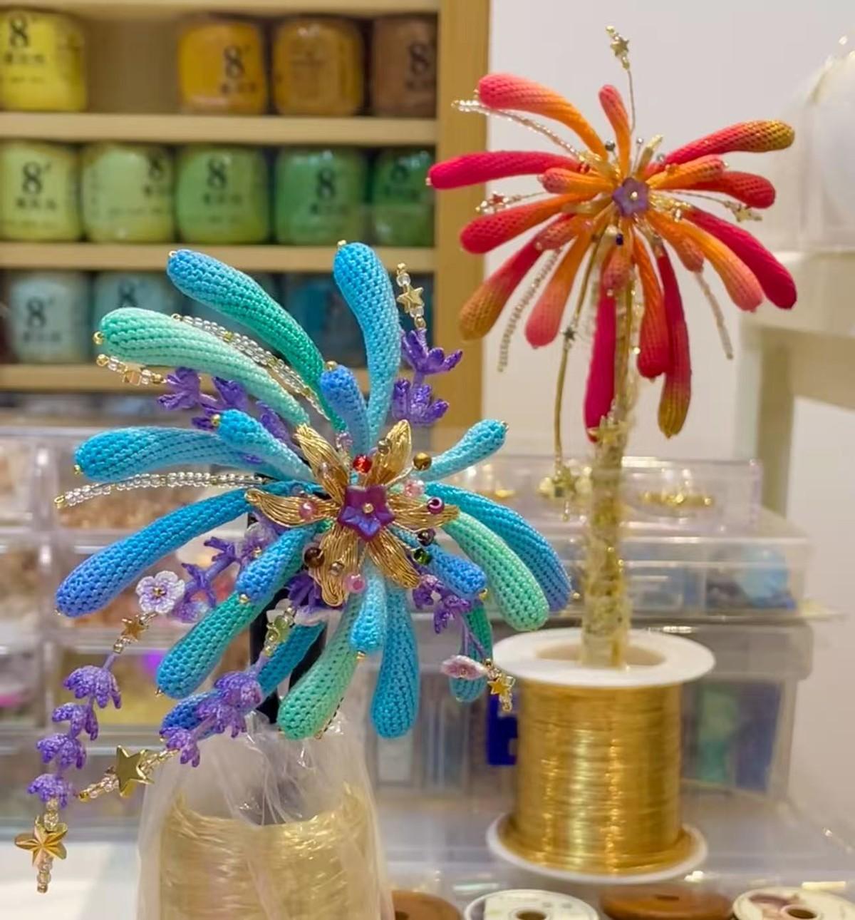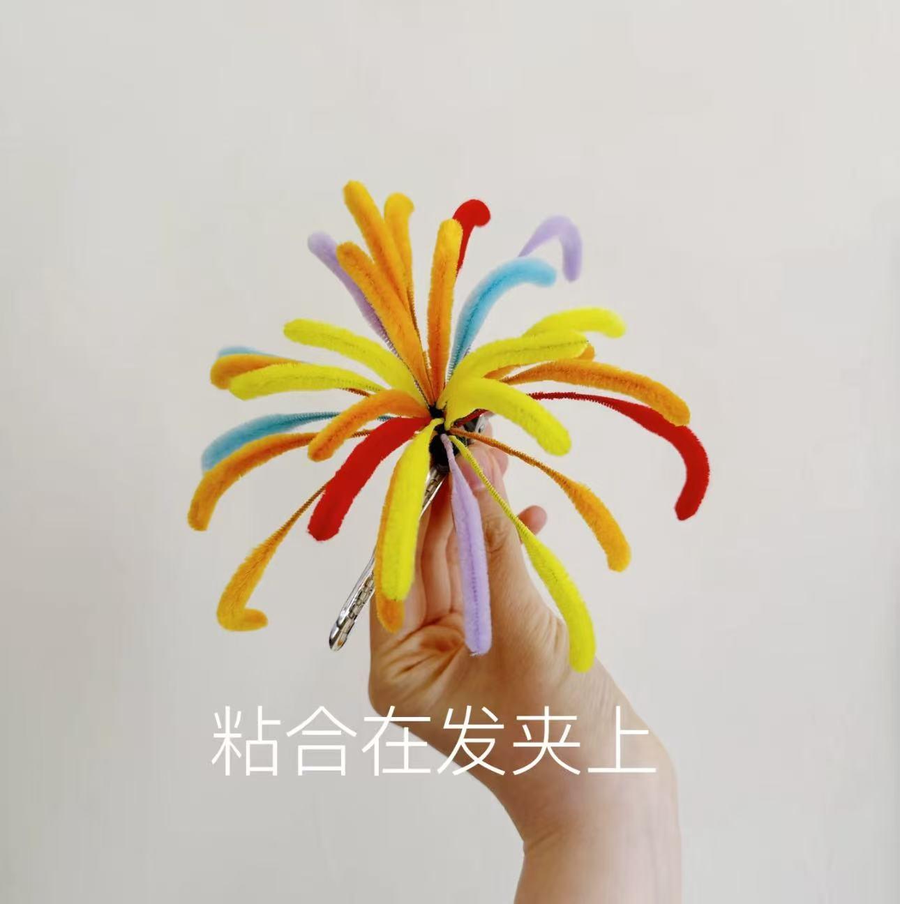 最近在網上還刷到了年輕人用扭扭棒煙花的思路,進階做成了煙花髮夾,真的太驚豔了。