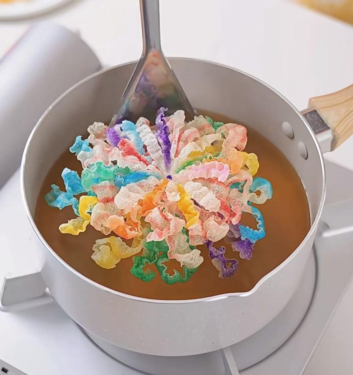 最後下鍋一炸,就成了繽紛綻開的煙花了。