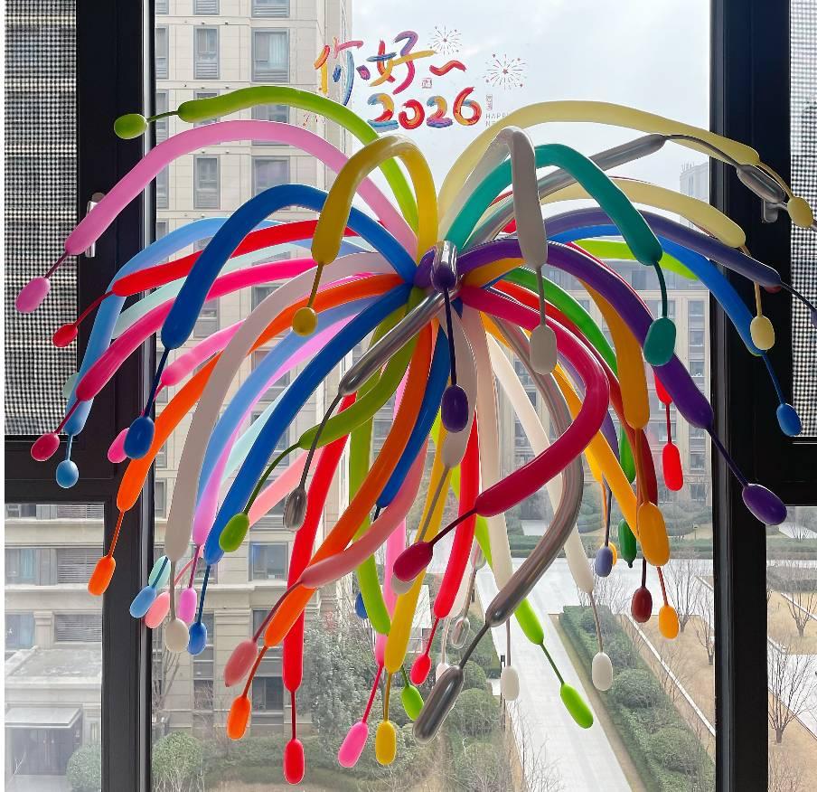 這樣就做出一個又大又飽滿的煙花氣球了,可以把它用粘鉤吊在屋頂或牆面。