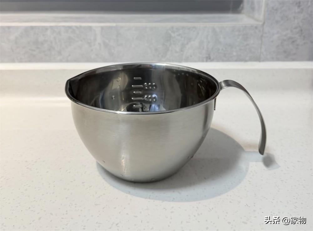 一個自帶刻度的不鏽鋼料理碗,這東西家家都有,但用來用去,還是MUJI、霜山的看起來更有質感一些,而且外面做了金屬拉絲的磨砂處理,不容易沾染污漬,內壁則是光滑的不鏽鋼,方便清潔,設計很是貼心。