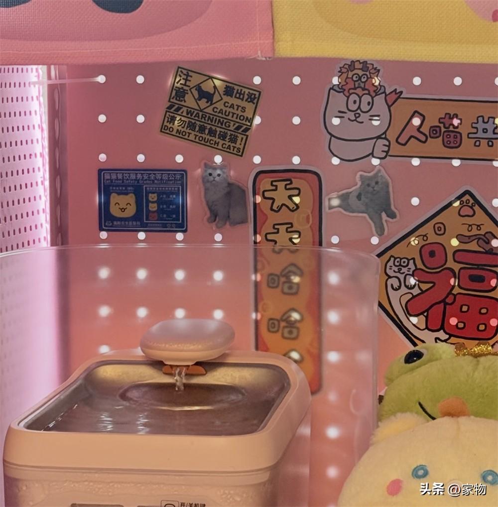 背面的洞洞板,一開始是用來掛各種各樣的貓咪用品的,但因爲現在有了一間單獨的貓房,也就乾脆“放飛自我”,把這洞洞板當成了一個透光透氣的背景板,貼些可愛的貼紙裝飾恰到好處。