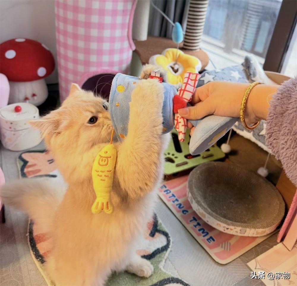 這位姑娘每天也會抽出時間來陪它玩,她說每天最開心的時候,就是看家裏的小貓“來財”在貓房裏發瘋,突然鑽到貓爬架底下,又探出頭來搶她手裏的玩具,鏟屎官和貓咪都玩得不亦樂乎。