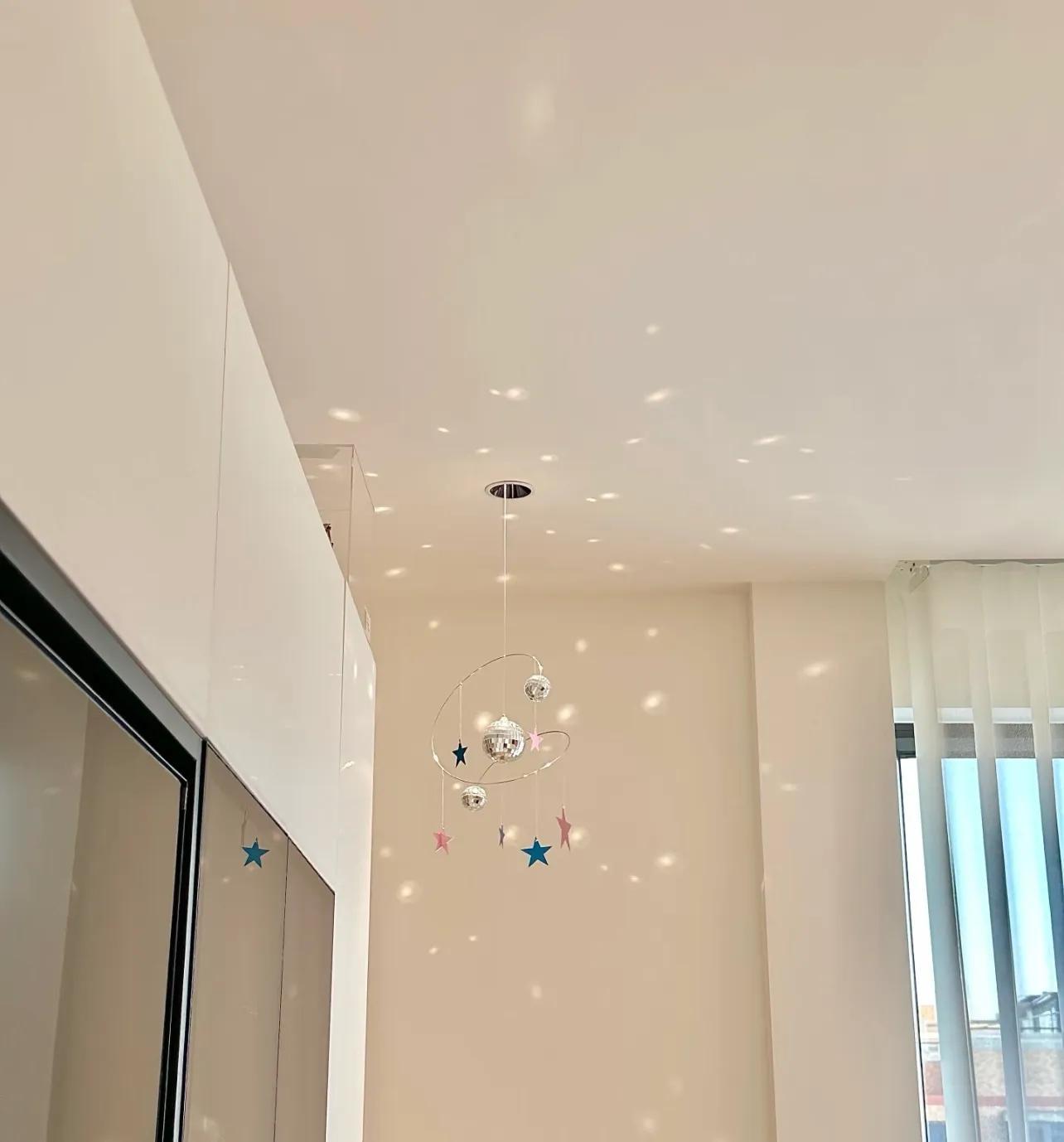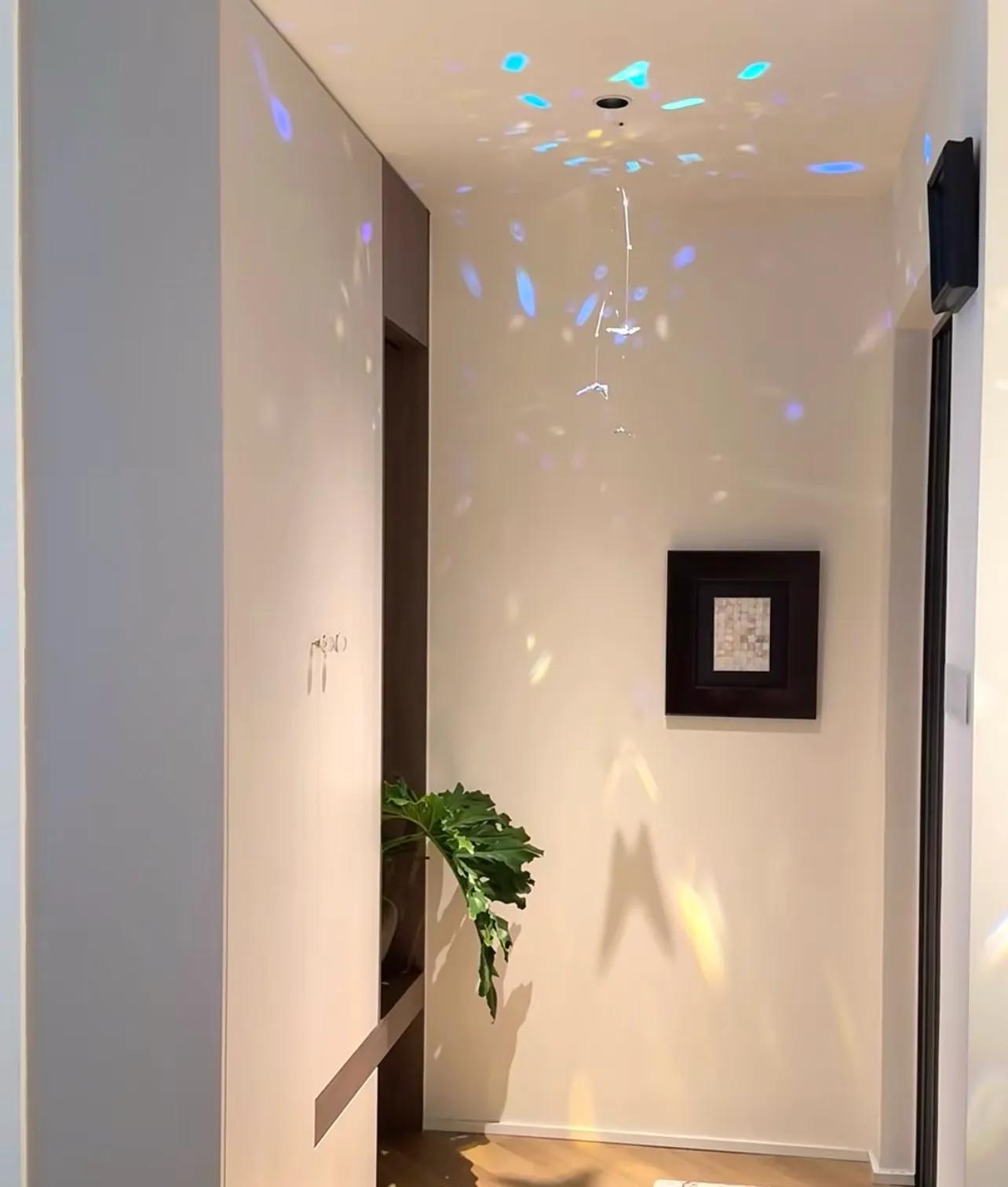 而住友@QIUU則玩得更張揚,掛的是炫彩蝴蝶,開着燈感覺像在迪廳,天花板、牆面、地板上全是光暈,氛圍感直接拉滿。