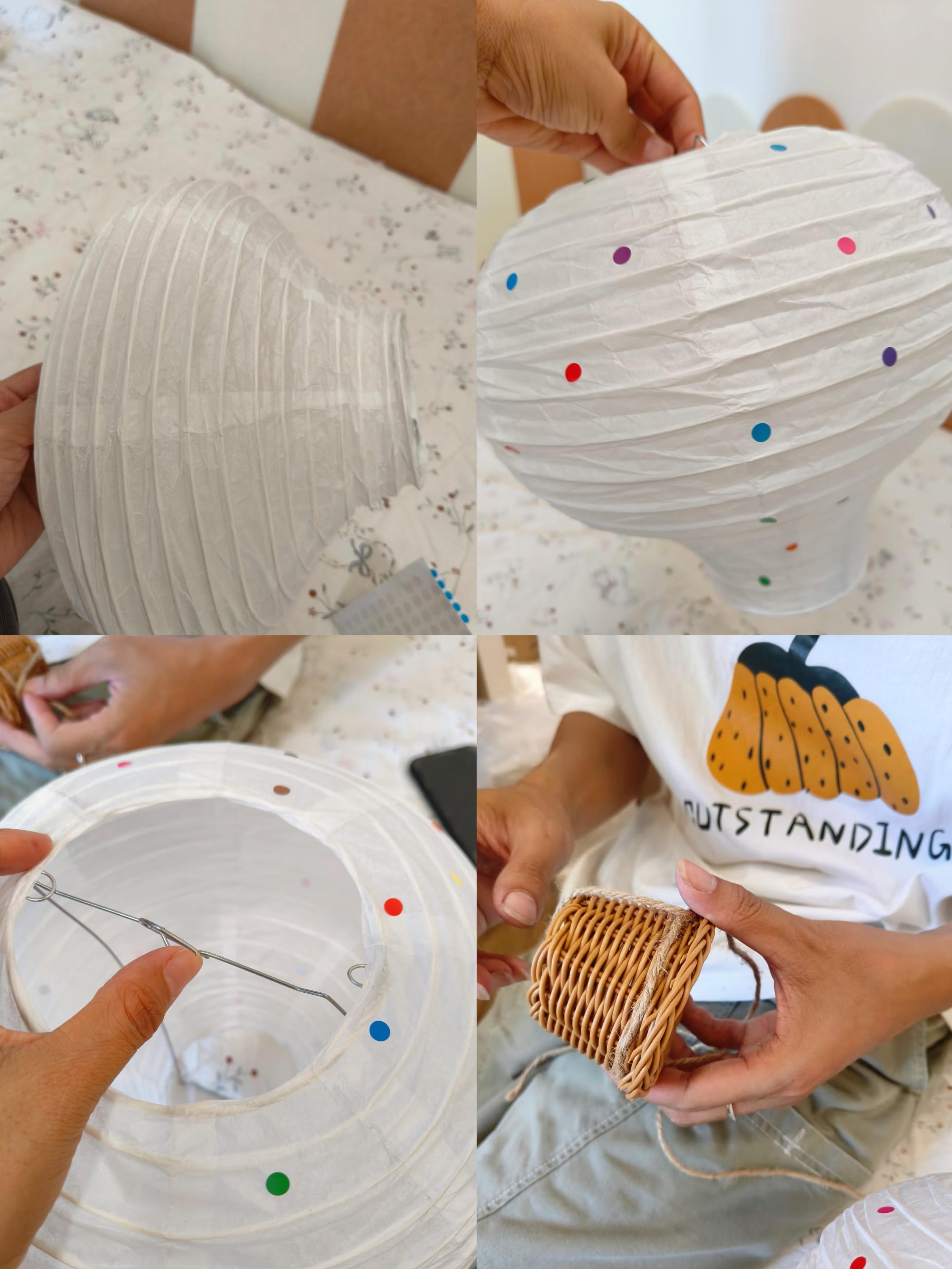 只需要把買回來的熱氣球貼上裝飾,接着用麻繩把下面的小籃子穿起來,繫上熱氣球;