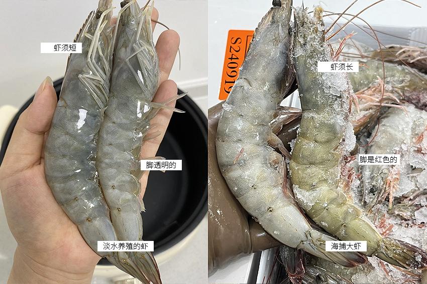 野生海捕蝦的蝦腳都是那種很鮮豔的紅色,而養殖蝦的蝦腳,都是發白透明的。