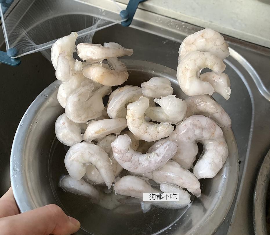 但是有一種冰凍的蝦仁,狗都不喫,就是超市裏那種看起來晶瑩剔透並且粉嘟嘟的凍蝦仁。